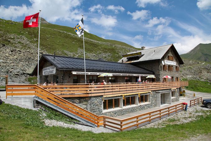 Hier enden oder starten einige Bergbahnen, zum Beispiel die Alp Trider Sattelbahn und die Flimsattelbahn. Das Steinhaus stammt aus dem Jahr 1934. Auf der beheizten Sonnenterrasse hast Du eine wunderbare Aussicht.