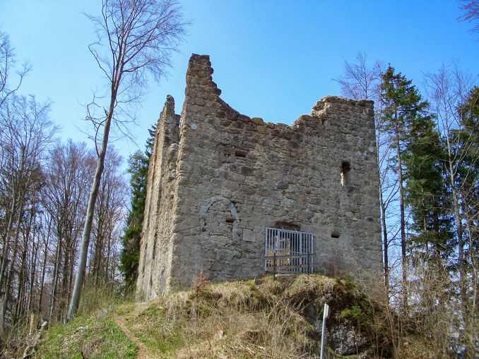 Aus dem 13. Jahrhundert stammt die Burgruine Langenegg. Also, genau genommen die Burg, sie war ja nicht immer eine Ruine. 😉 Der Fluß Iller fließt praktisch um die Höhenburg herum. Leider ist außer den Resten des rechteckigen Bergfrieds nicht mehr viel zu sehen und das auch nur von außen (Gittertor verschließt den Eingang), der Wanderweg hoch ist aber idyllisch und schön gelegen. Von Martinszell (Ortsteil von Waltenhofen) aus brauchst Du ungefähr eine Stunde zu Fuß.