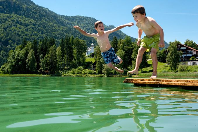 Am Westufer des Weißensees in Füssen gibt es ein Naturfreibad, natürlich mit direktem und flachem Zugang zum schönen Allgäuer See mit dem glasklaren Wasser.
